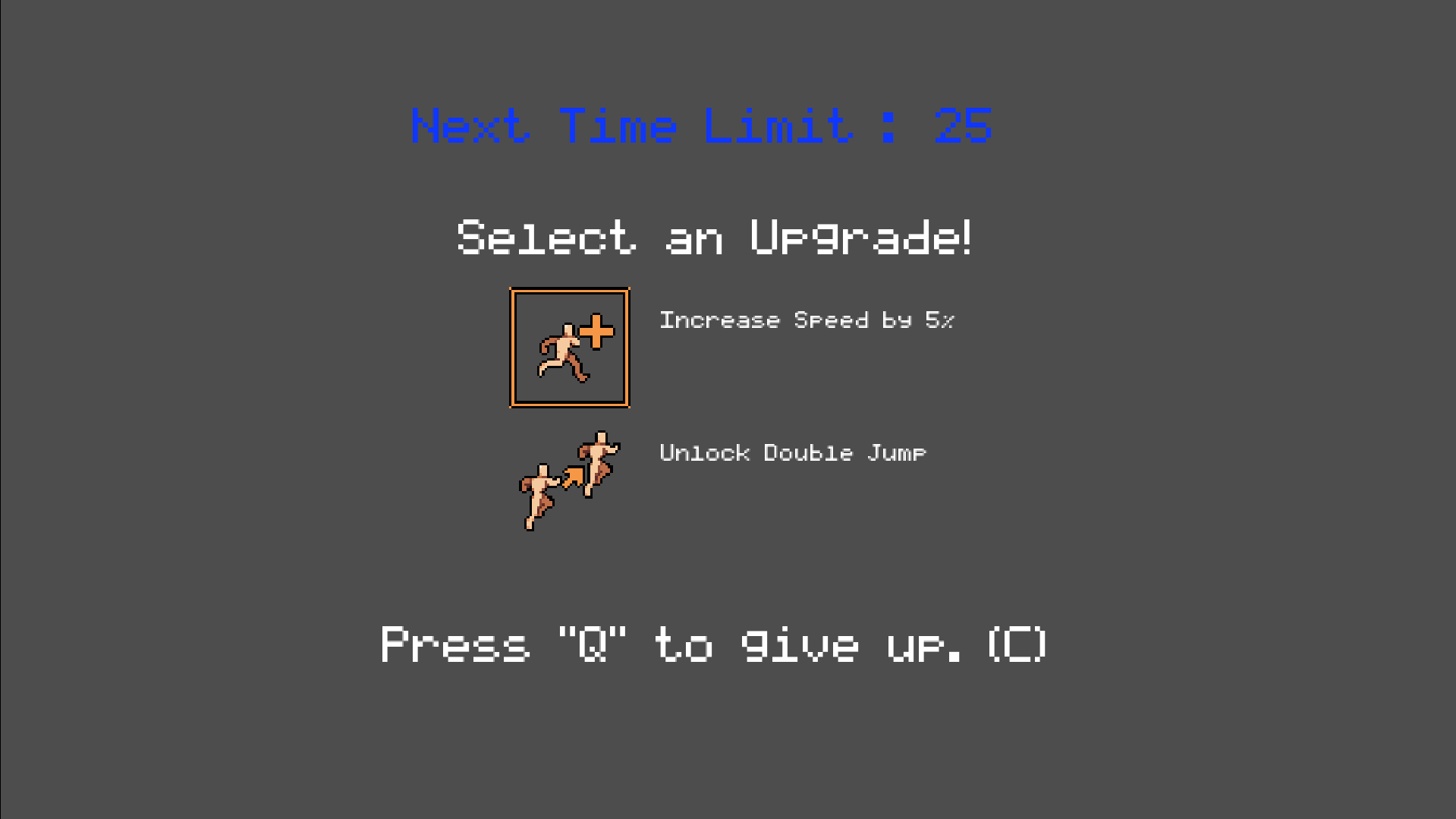 You must get from the start to the finish in the fastest possible time, every time you complete the loop you get to choose an upgrade, then go again with a tighter time limit.